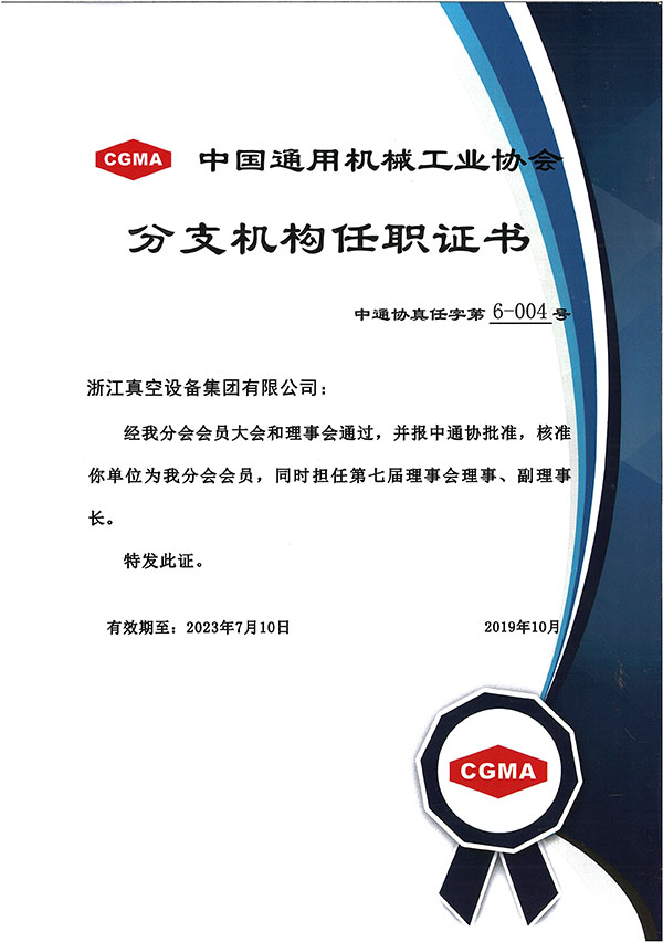 中國通用機械工業協會分支機構任職證書